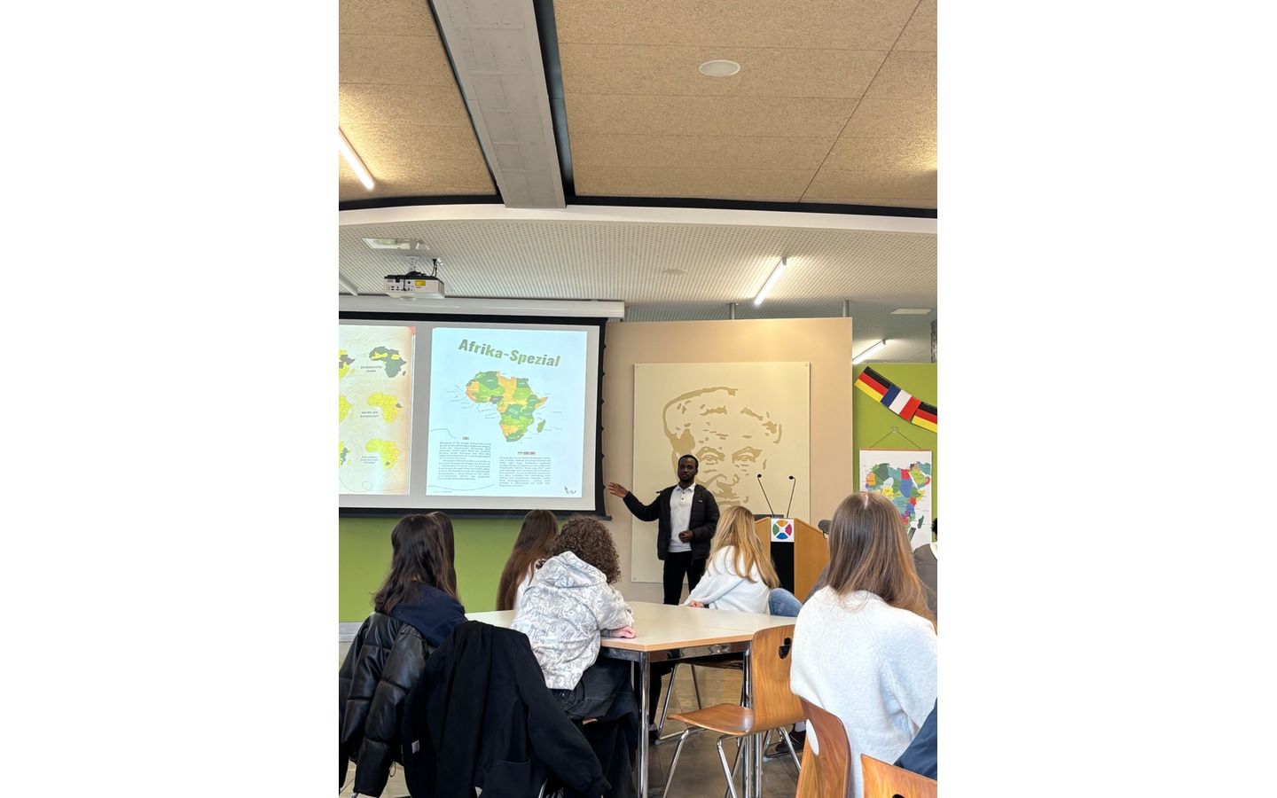 Parallel dazu fand ein Workshop des Projekts Grenzenlos – Globales Lernen in der beruflichen Bildung (WUS) statt. Der Referent Sayo Sangaré arbeitete hierbei mit der 10. Klasse des Französischzweigs der Realschule sowie den Klassen des BSZ zusammen.