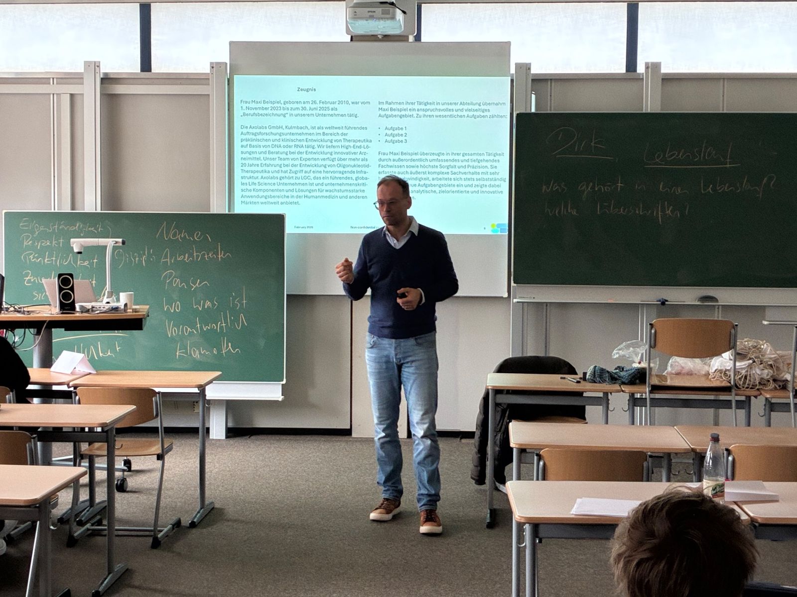 Mit Dirk Schuhmacher von Axolabs Kulmbach und Lucie Hildner von Ireks Kulmbach waren zwei erfahrene Vertreter aus der Praxis an unserer Schule zu Gast. Gemeinsam vermittelten sie anschaulich, was junge Menschen beim Übergang von der Schule in ein Unternehmen erwartet – und worauf es im Bewerbungsprozess wirklich ankommt.