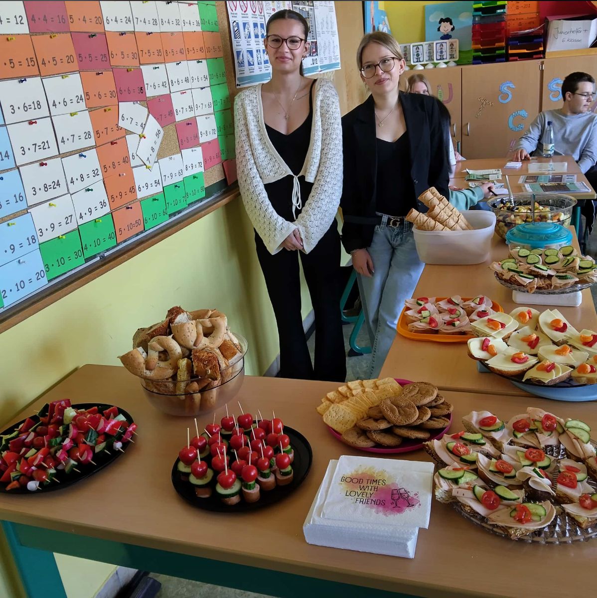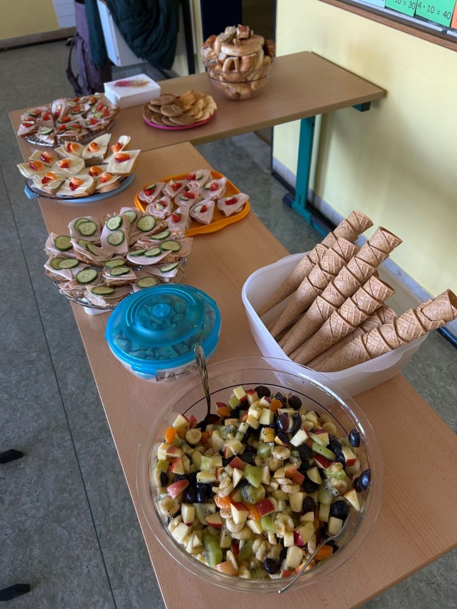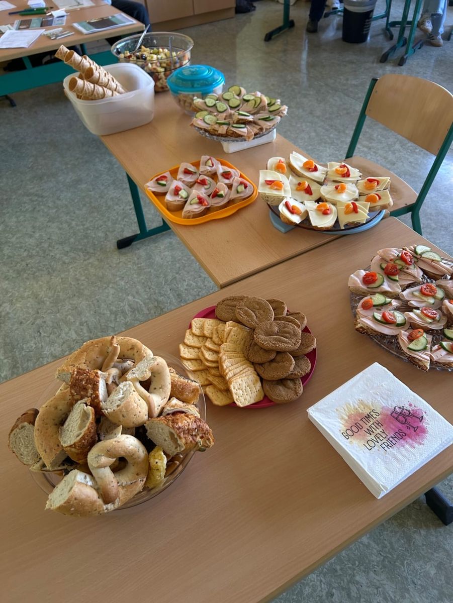 Unsere Realschule präsentierte das Nachhaltigkeitsziel Nr. 2: „Den Hunger beenden, Ernährungssicherheit erreichen und nachhaltige Landwirtschaft fördern“. Vorgestellt wurden unsere neu gestartete Kooperation mit FoodSharing Kulmbach sowie das Konzept der „Gesunden Pause – gute und gesunde Schule“. Mit geretteten Lebensmitteln stellten wir ein buntes und äußerst leckeres Buffet zusammen.
