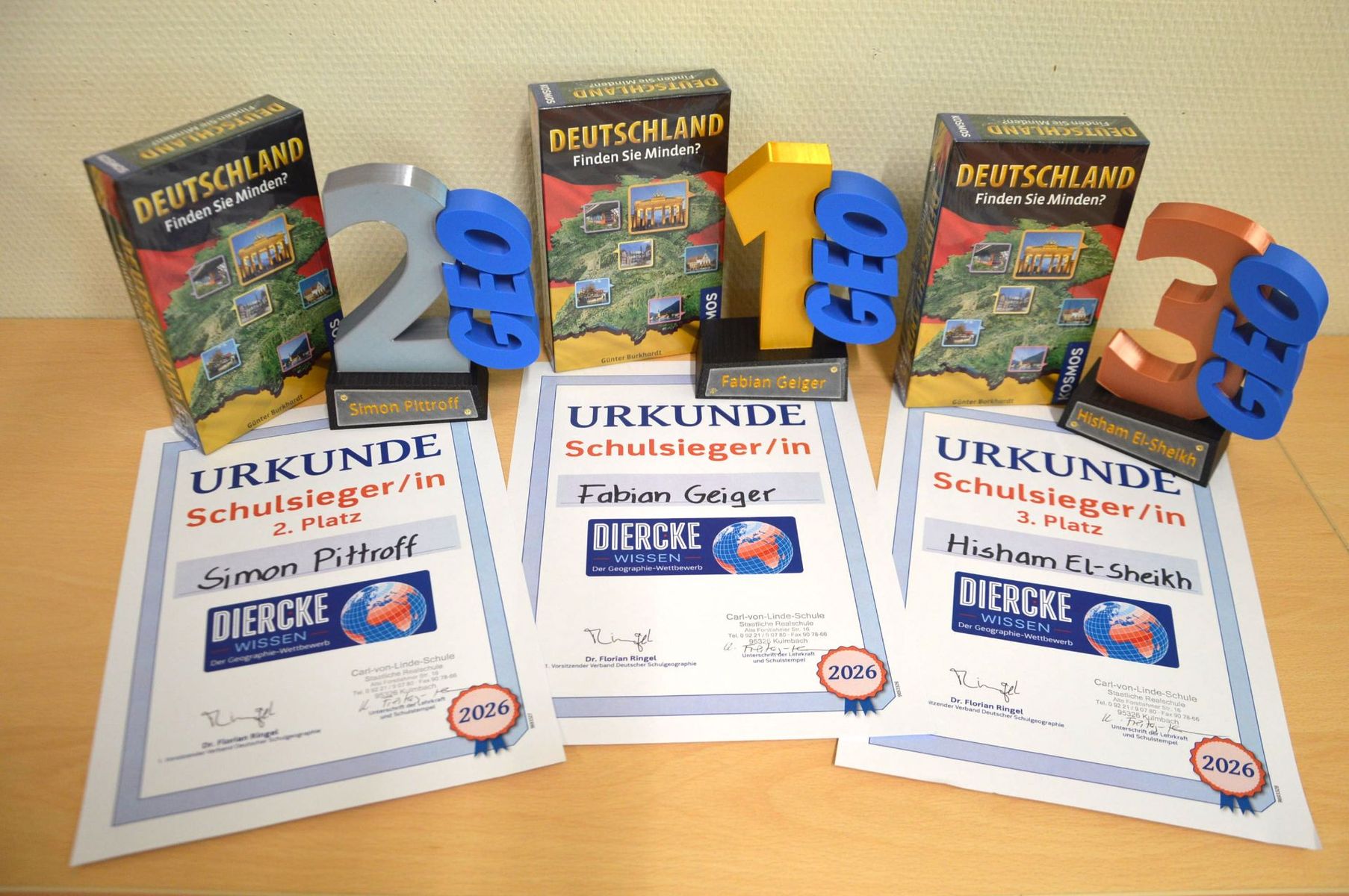 Auch in diesem Jahr haben sich Schülerinnen und Schüler der Jahrgangsstufen 7–10 der Carl‑von‑Linde‑Schule wieder am bundesweiten Geographiewettbewerb Diercke WISSEN beteiligt. Der Wettbewerb gilt mit inzwischen über acht Millionen Teilnehmenden seit seinem Bestehen als der größte seiner Art in Deutschland und motiviert Jugendliche dazu, ihr geographisches Wissen über Deutschland, Europa und die Welt unter Beweis zu stellen.