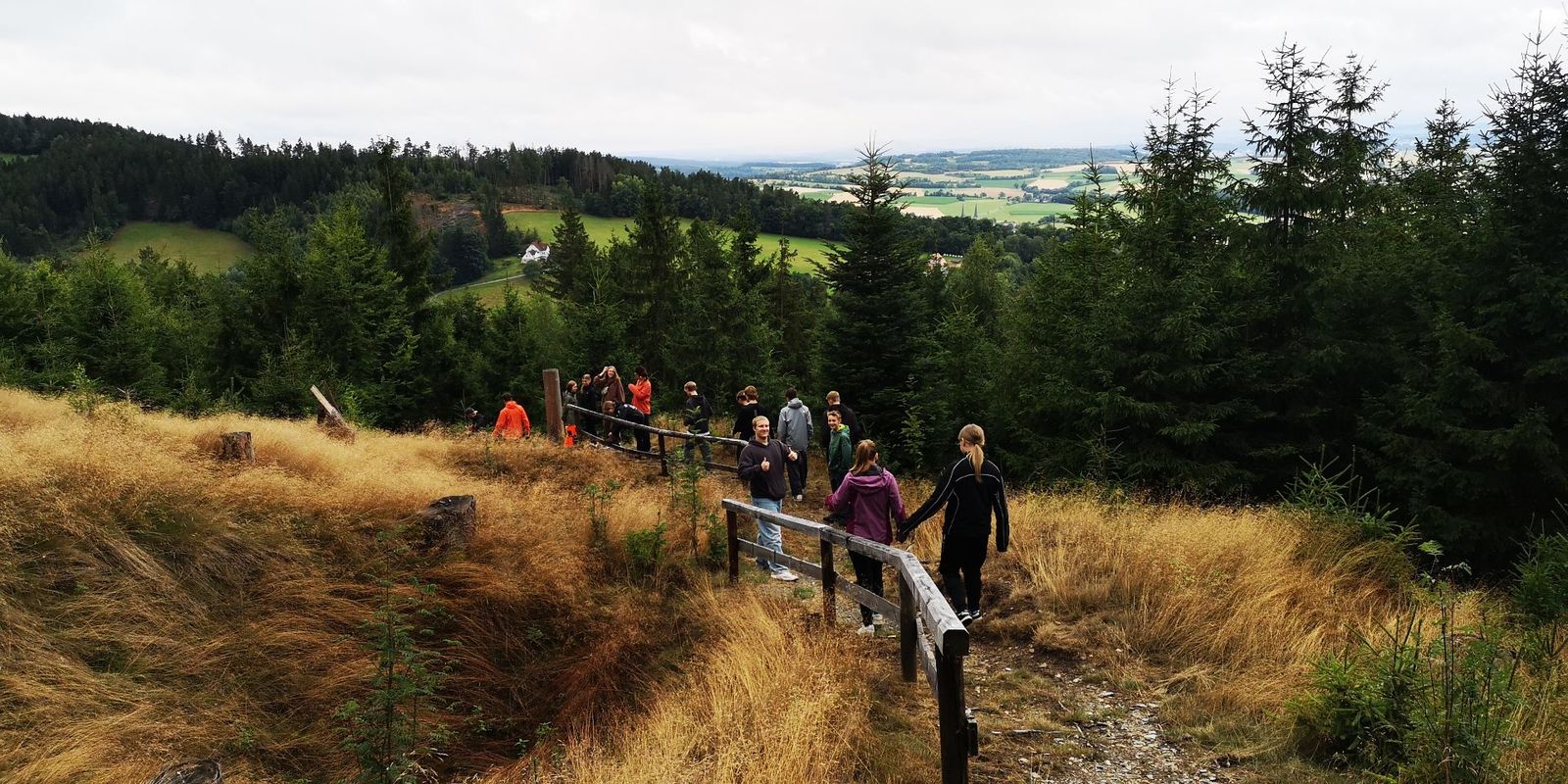Ein einsetzender Starkregen zwang uns, noch etwas länger am Goldberg zu verweilen, bis es dann endlich zum ersten Abschnitt unserer MTB-Tour losging. Sie führte uns über Bischofsgrün nach Weißenhaid zu unserer Unterkunft in der DAV-Hütte Edelweiß. Die Radstrecke hielt einige Steigungen für uns bereit und war für so manche Teilnehmerin und Teilnehmer eine echte Herausforderung. Aber ein sehr gelungenes, gemeinsam gekochtes Abendessen, entschädigte schnell für die Mühen.