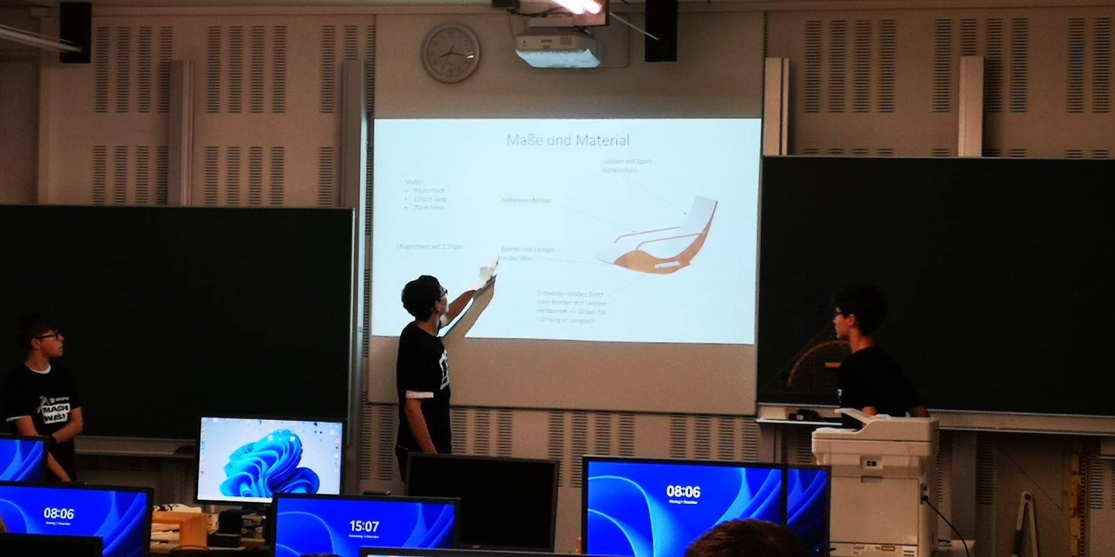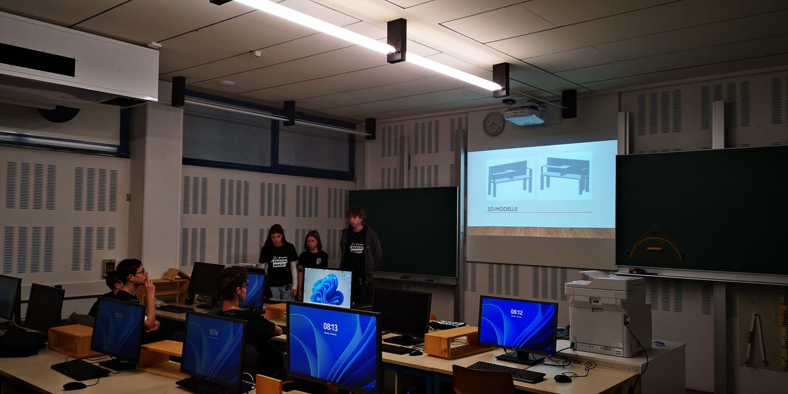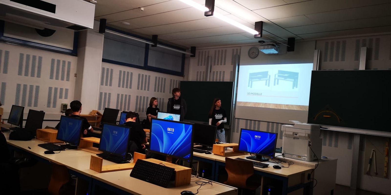 Nach den Herbstferien hat die Klasse 10a im IT-Modul Produktdesign mit der kreativen Phase begonnen: Sie entwickelte Möbelkonzepte, die funktional, witterungsbeständig und für Unterrichtssituationen geeignet sind. Eine gemeinsame Jury aus Realschule und Berufsschule wählte anschließend das überzeugendste Modell aus. Dieses Siegerdesign wird im nächsten Schritt weiter verfeinert, in CAD umgesetzt und technisch so ausgearbeitet, dass es in der Schreinerwerkstatt produziert werden kann. In der Schreinerei übernehmen dann Auszubildende und Ausbilder die Fertigung der Einzelteile – inklusive CNC-Arbeiten und Materialbearbeitung. Die Schülerinnen und Schüler der 10a und später auch der 8a begleiten einzelne Produktionsschritte direkt vor Ort. Sobald die Elemente fertiggestellt sind, werden sie an die Realschule geliefert. Dort führt die 8a im Werkunterricht die Oberflächenbehandlung und Montage durch, unterstützt von Auszubildenden der Berufsschule. Auf diese Weise entsteht ein echtes Gemeinschaftsprodukt, das Theorie und Praxis eng verzahnt und Schülerinnen und Schüler frühzeitig mit Ausbildungsberufen im Handwerk vertraut macht. Parallel dokumentiert die 10a im Rahmen des IT-Moduls Audio & Video das gesamte Projekt mithilfe von Foto-, Ton- und Videoaufnahmen. Die fertige Dokumentation wird bis 15. April 2026 als Wettbewerbsbeitrag eingereicht und fließt zugleich als praktischer Leistungsnachweis in den Unterricht ein. Mit diesem Projekt setzt die Realschule ein starkes Zeichen für praxisbezogenes Lernen, schulartübergreifende Zusammenarbeit und die Bedeutung handwerklicher Fähigkeiten. Wir freuen uns auf die gemeinsame Umsetzung – und natürlich auf die neuen, selbst gestalteten Möbel, die unseren Außenbereich bereichern werden.