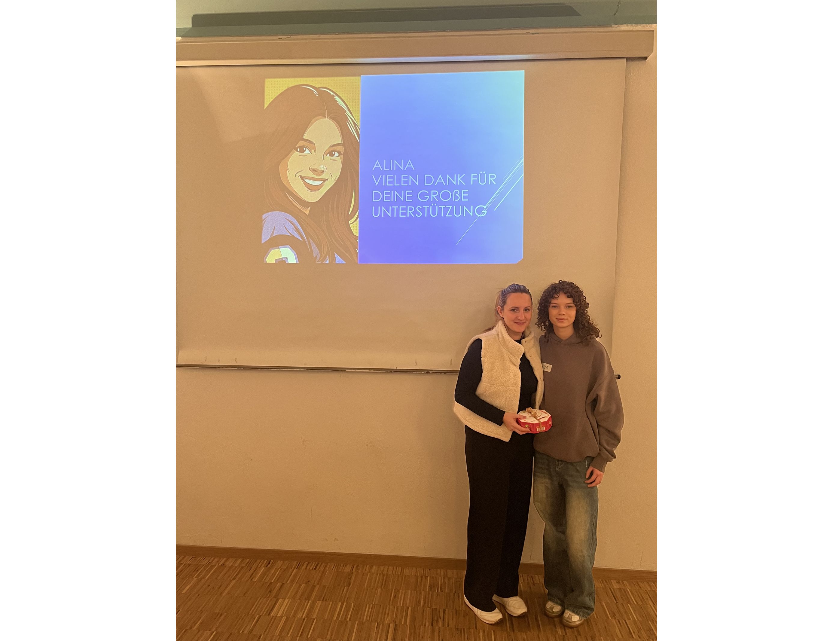 Ein besonderer Moment war der Dank der SMV an die langjährige Schülersprecherin Alina Bär. Für ihr großes Engagement in den vergangenen Jahren erhielt sie ein kleines Präsent. Aufgrund ihrer Abschlussprüfungen konnte sie ihr Amt nicht weiterführen, weshalb die SMV diese Gelegenheit nutzte, ihren Einsatz für die Schulgemeinschaft noch einmal besonders hervorzuheben.