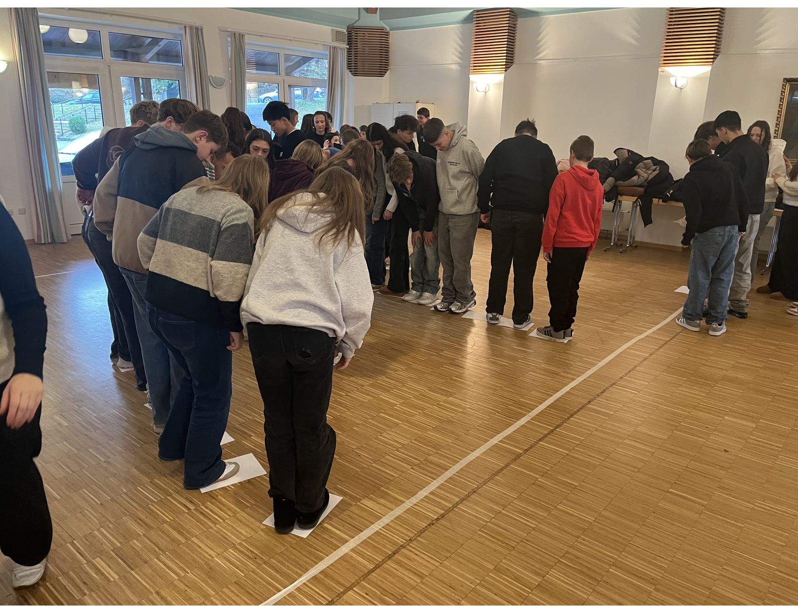 Zu Beginn des Seminars informierten sich die Teilnehmenden über die Rechte und Pflichten von Klassensprecherinnen und Klassensprechern. Anschließend stand ein Teambuilding-Spiel auf dem Programm, bei dem die Gruppen gemeinsam einen „reißenden Fluss“ überqueren mussten. Dabei waren Teamarbeit, Kommunikation und Zusammenhalt gefragt.