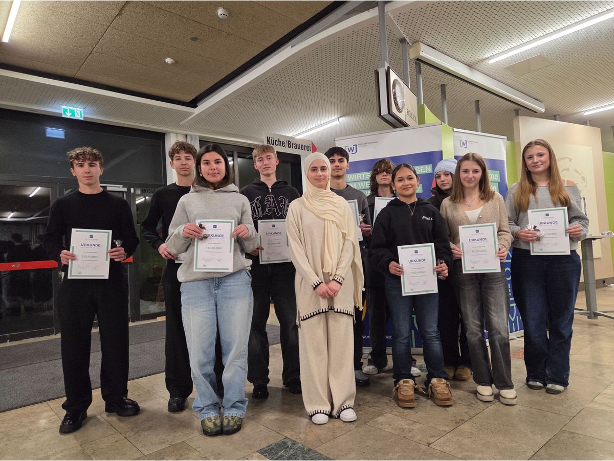Am bundesweiten Wettbewerb „Wirtschaftswissen im Wettbewerb“ der Wirtschaftsjunioren nahmen in diesem Jahr rund 500 Schülerinnen und Schüler des Landkreises Kulmbach teil. Auch die Realschule Kulmbach war stark vertreten: Alle 9. und 10. Klassen unserer Schule beteiligten sich engagiert am Wettbewerb. Die Teilnehmenden mussten 30 Multiple-Choice-Fragen aus den Bereichen Wirtschaft, Internationales, Finanzen und Digitalisierung beantworten.