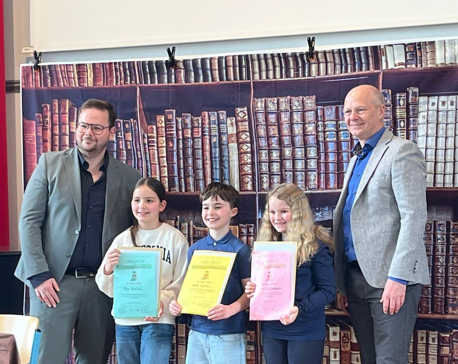 Im Anschluss an zwei anspruchsvolle Vorleserunden, in denen alle Teilnehmenden ihr Können eindrucksvoll unter Beweis gestellt hatten, versammelten sich schließlich alle gespannt zur Siegerehrung. Die Anspannung war im gesamten Raum deutlich spürbar, denn jede und jeder hoffte auf eine Platzierung. Als die Jury schließlich die Ergebnisse verkündete, war die Freude besonders groß, als Learts Name fiel: Er erreichte einen hervorragenden zweiten Platz und wurde für seine überzeugenden Vorträge mit großem Applaus belohnt.
